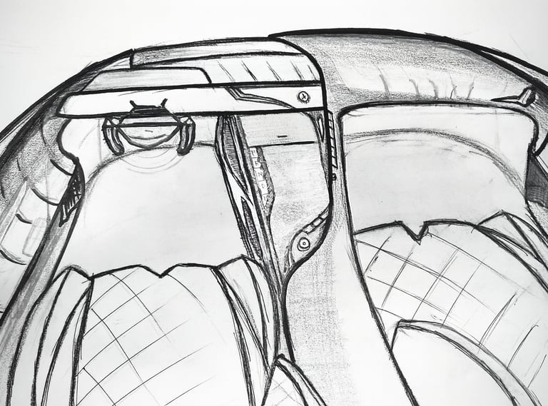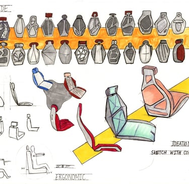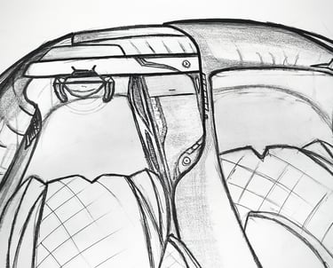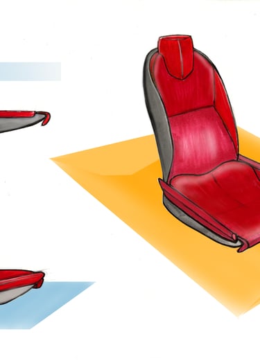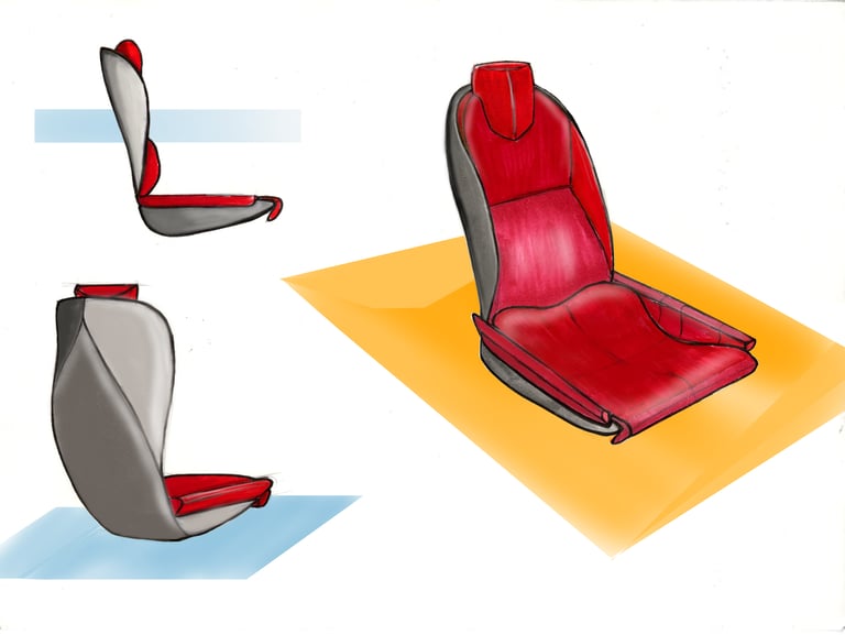 Guided by an aviation and aerospace theme, I explored my ideas through sketches that drew inspiration from the sculpted forms of airplane first-class seats and the commanding presence of a captain’s chair.