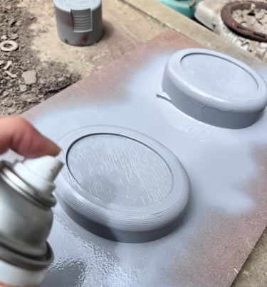 3D Print → Bondo → Sanding → Spray Paint → Primer → Laser-Cut Acrylic