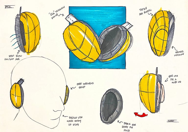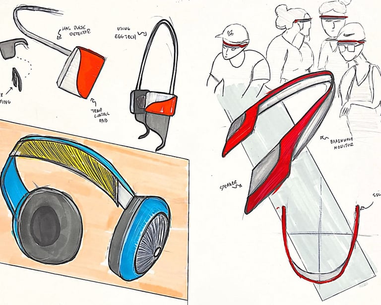 The early ideations of MoodAura explore forms while building a narrative of what the product aspires to be, shaping both its brand identity and design language.