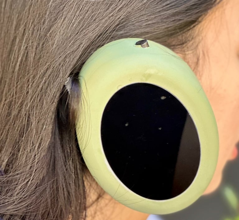 MoodAura features a slim ear-hook design for comfort and freedom of movement. The EEG system is built into the hook and a small piece above the ear near the parietal lobe for better emotion tracking.