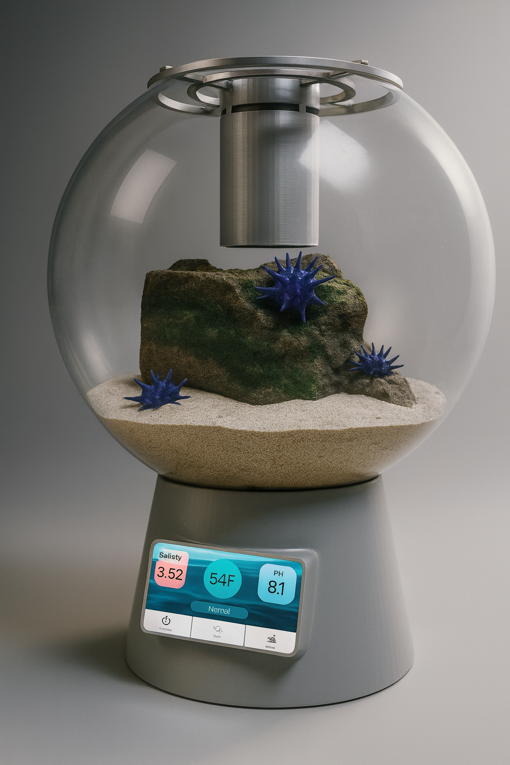 Tank – 18" clear acrylic sphere with 360° viewing.