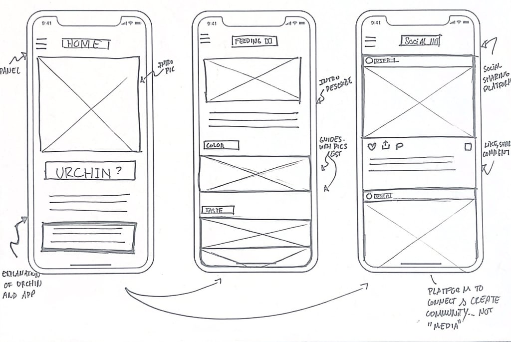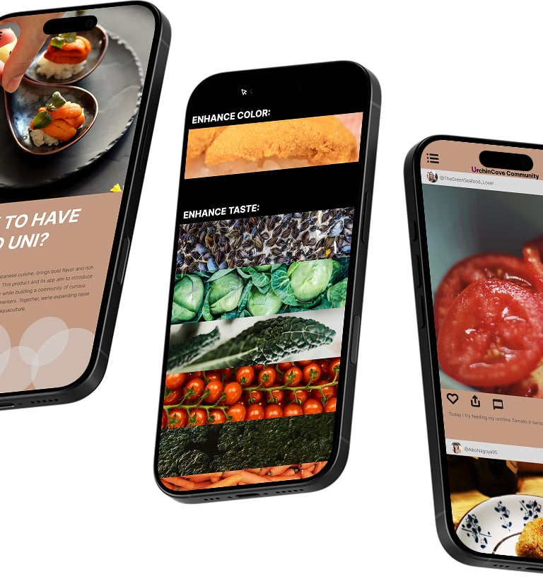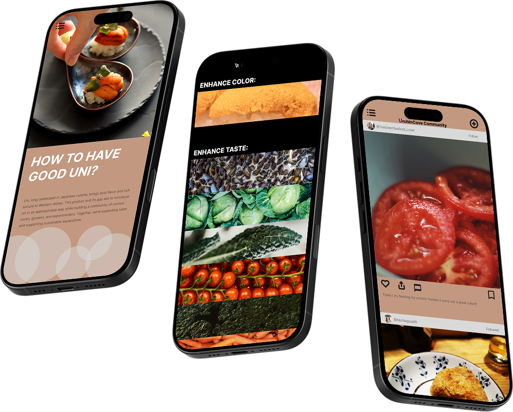 The Community Hub transforms UrchinCove from a product into a shared experience—a social platform where users post updates, connect, and exchange unique urchin farming and culinary methods.