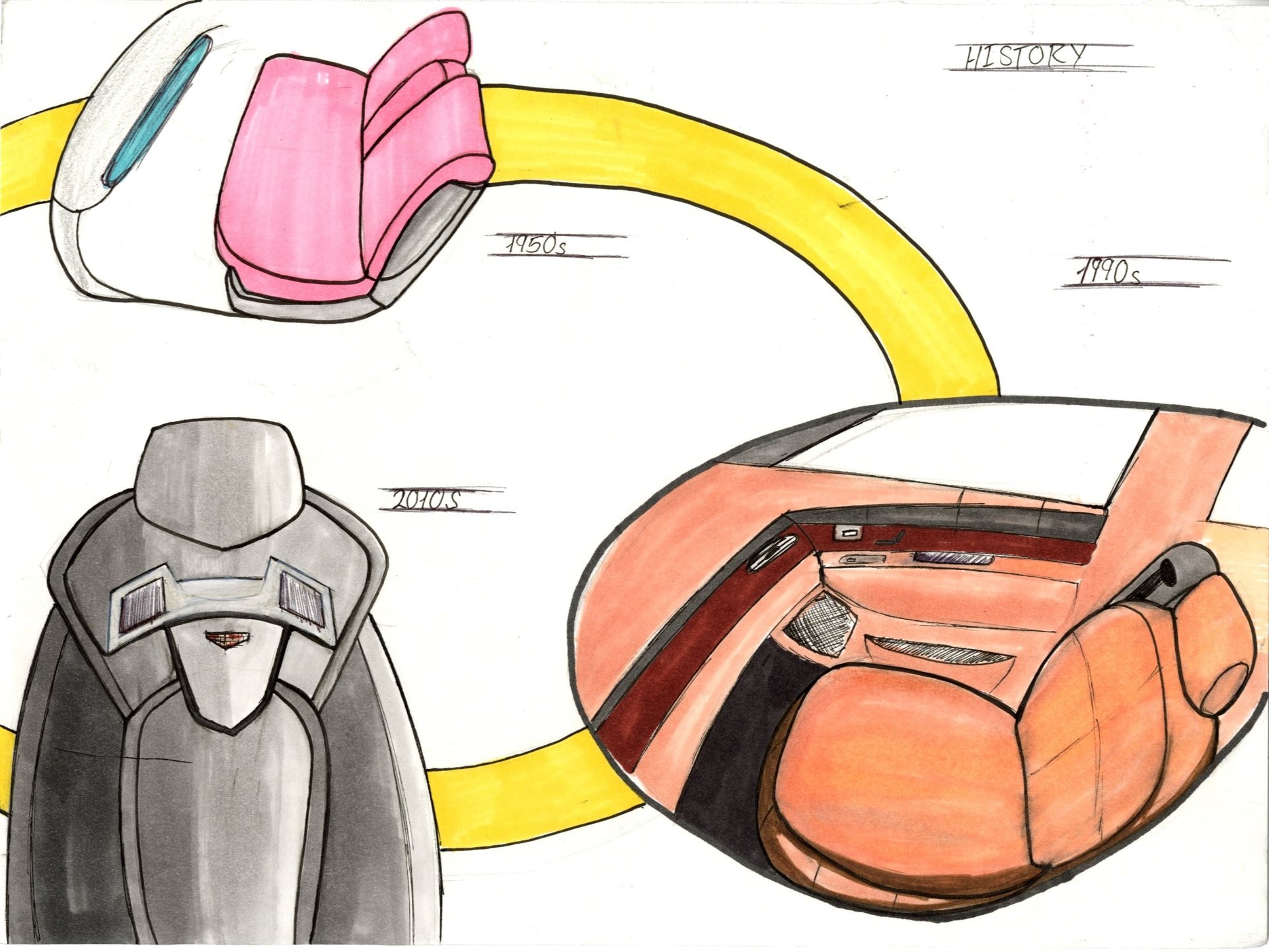 After, I have my final sketch I can start physical color the sketch and put it into Photoshop to touch up color and shading. Using Vizcom and Photoshop AI to touch up colors and materials.