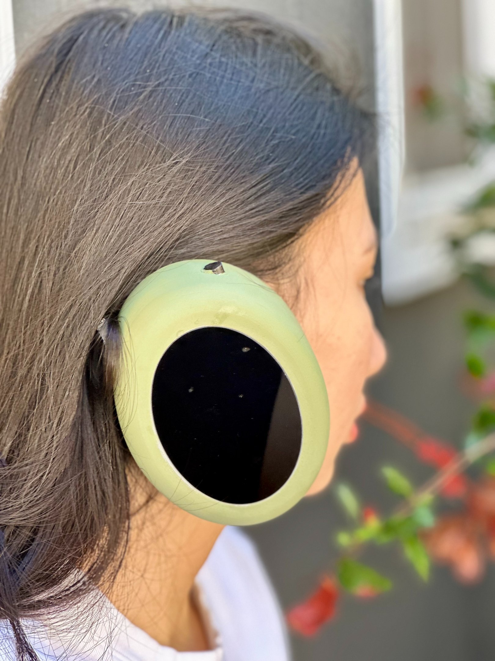 MoodAura features a slim ear-hook design for comfort and freedom of movement. The EEG system is built into the hook and a small piece above the ear near the parietal lobe for better emotion tracking.